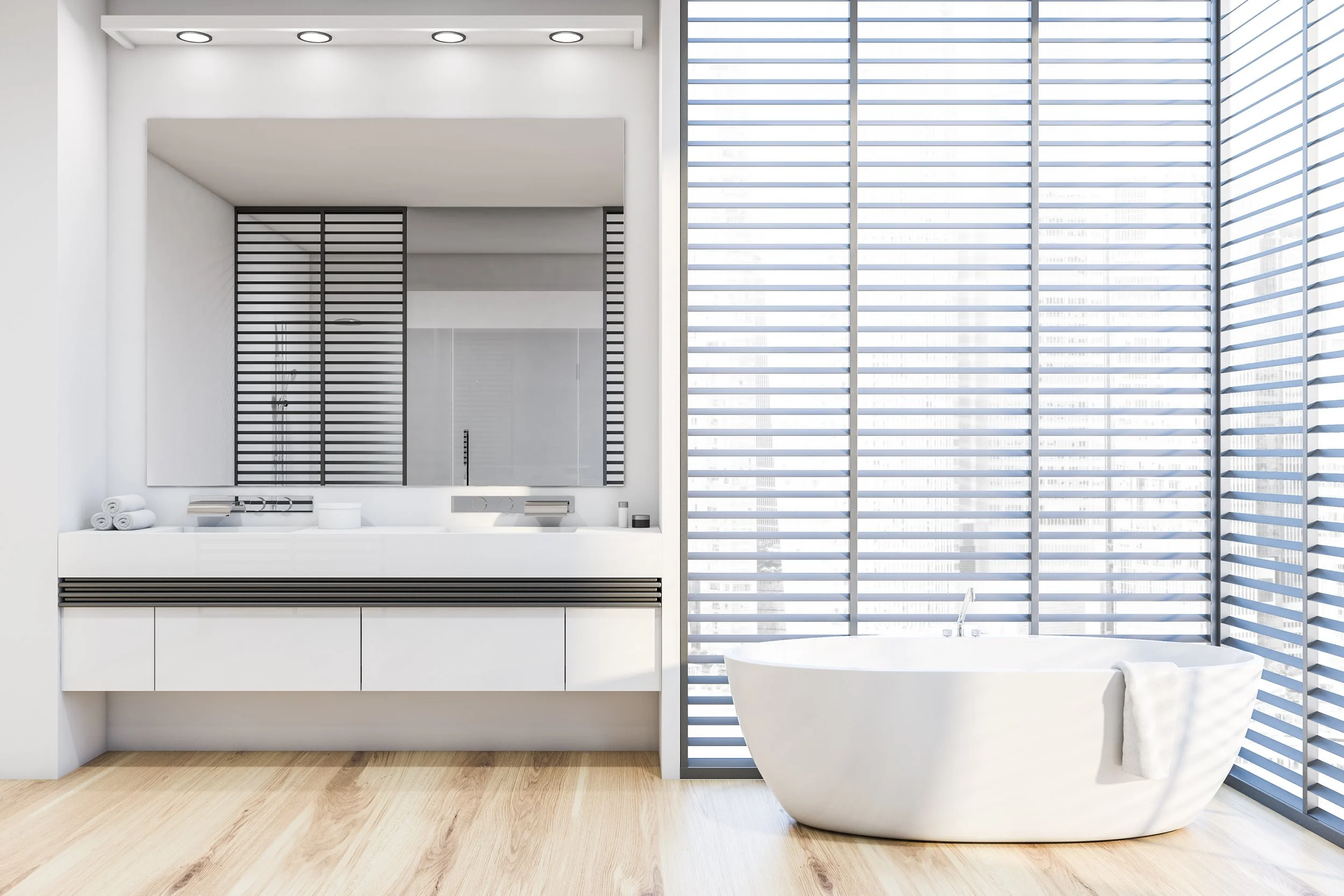 Display of high-quality PVC shutters manufactured in Canada and tailored to fit any window configuration.